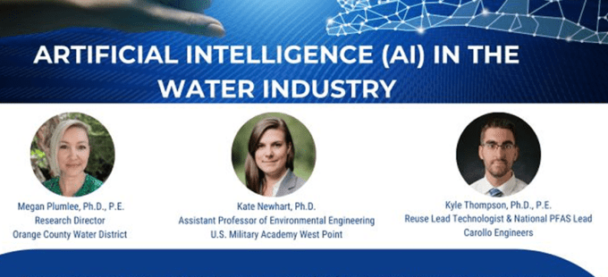 Curious about the role Artificial Intelligence (AI) plays in day-to-day operations and long-range planning? Join industry experts, including Carollo Engineers’ own Kyle Thompson, presenting with Megan Plumlee (Orange County Water District) and Kate Newhart (United States Military Academy at West Point) who will present on AI and predictive analytics in the water industry.